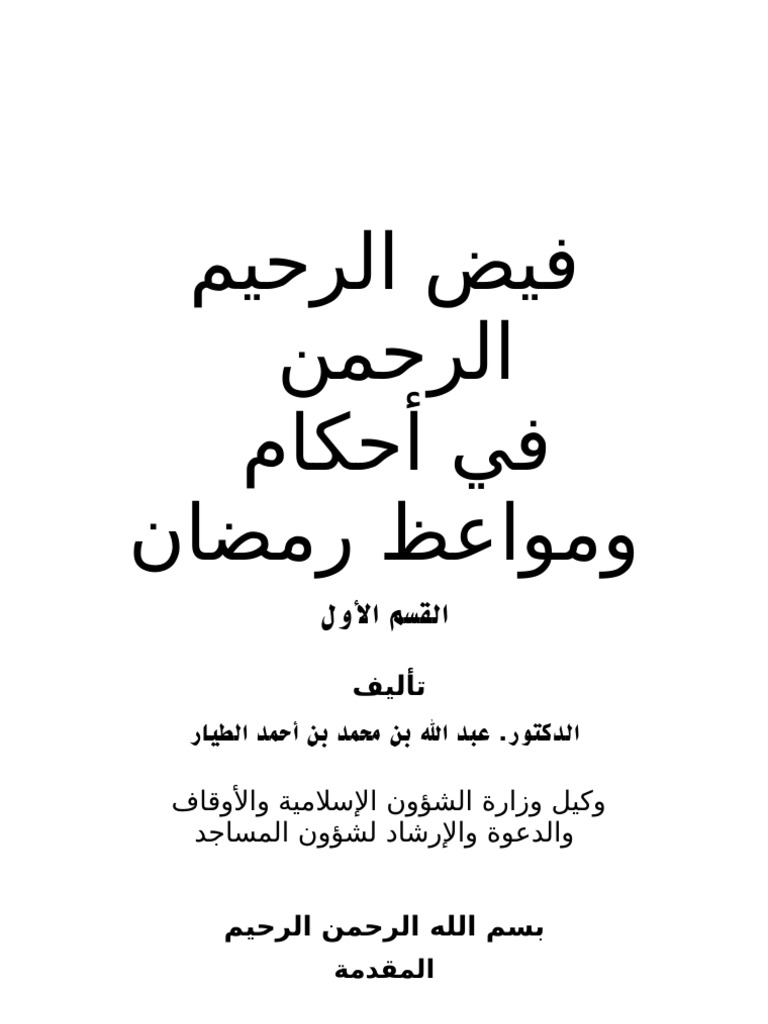 فيض الرحيم الرحمن في أحكام ومواعظ رمضان